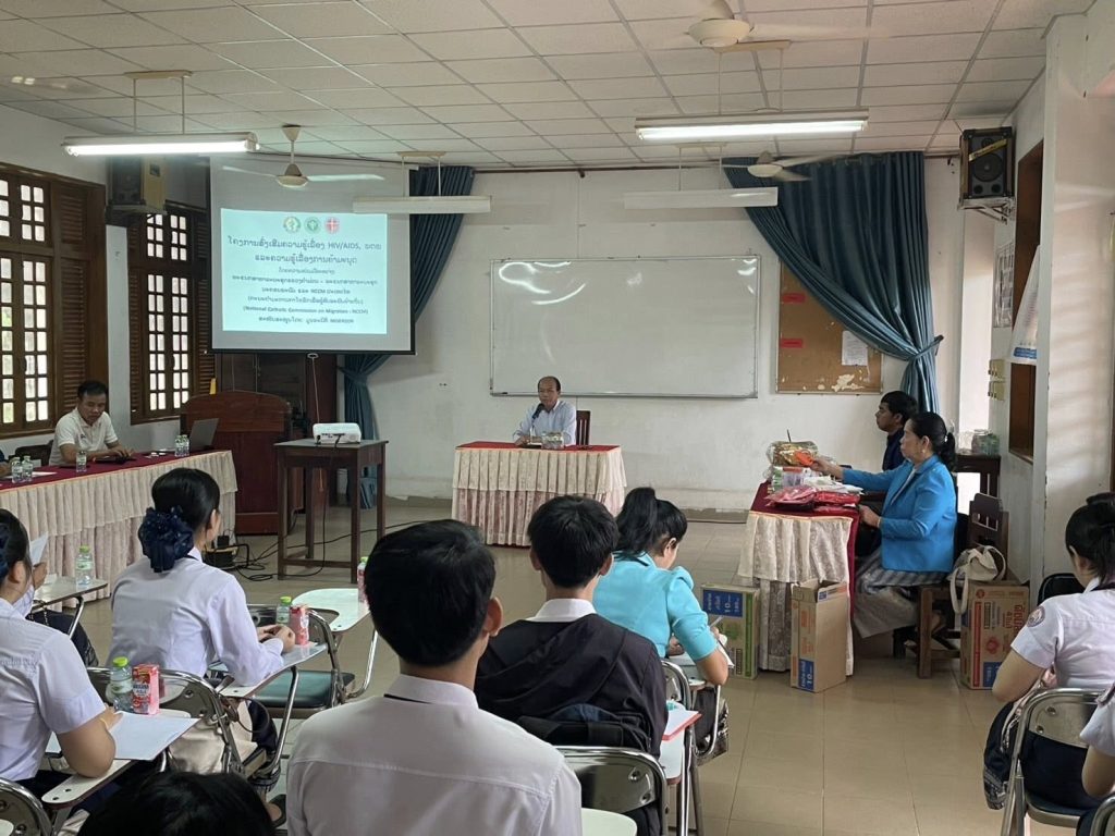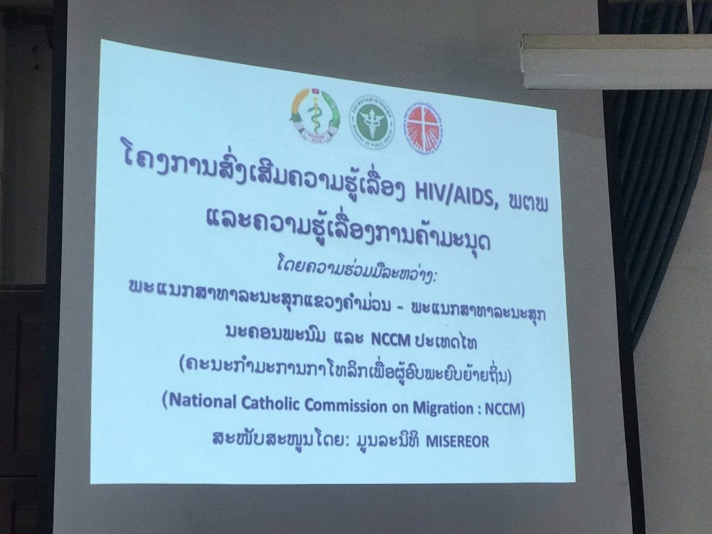 โครงการ “ส่งเสริมความรู้เรื่อง HIV/AIDsโรคติดต่อทางเพศสัมพันธ์และการป้องกันการค้ามนุษย์”ให้แก่นักศึกษาพยาบาลและผดุงครรภ์ โรงเรียนสาธารณสุขแขวงคำม่วน เมืองท่าแขก แขวงคำม่วน สปป.ลาว